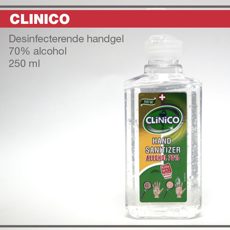 CLINICO desinfetcerende handgel 70% alcohol is perfect voor een directe en doeltreffende handontsmetting.